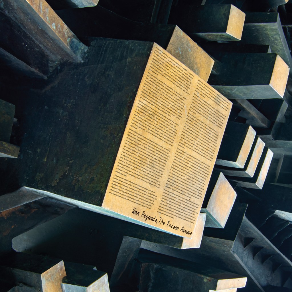 Despite being in a lot of bands for the last 30 years, neither bassist Patrick Morris, drummer Adam Reach, nor guitarist/vocalist Justin Sinkovich has ever recorded a 4th album with any of their other bands. ‘War Regards’ is true to the The Poison Arrows’ recognizable form, yet is their most laser focused album to date. The song structures are succinct, and the recordings get to the point with very few extra overdubs besides a few percussion accents, and a quickly recorded second guitar to balance the left and right sides throughout the album. There is one addition, the album’s one guest, rapper Sterling Hayes of Chicago’s SaveMoney (Chance the Rapper, Vic Mensa, Joey Purp). Sterling went into a studio to provide his feature in the middle of track 5, “We Are Collateral.” Sterling Hayes and The Poison Arrows had been seen performing this track and others live around Chicago in 2020.